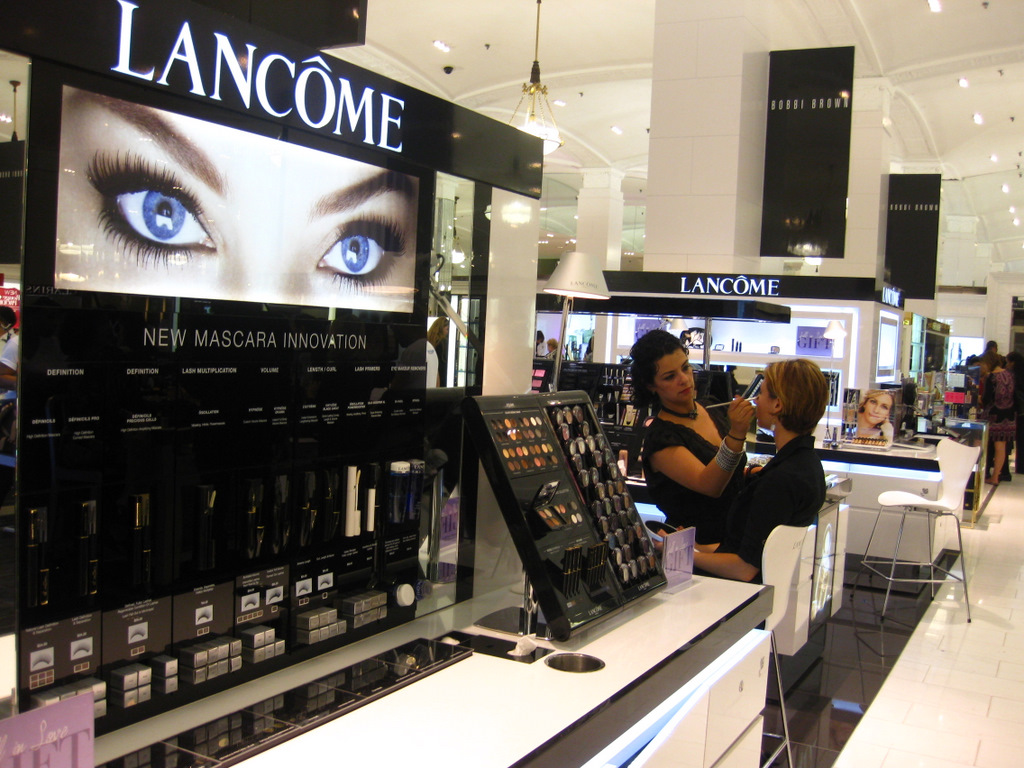 the Lancome makeup counter. Face scrunched to hell, back screaming from a day